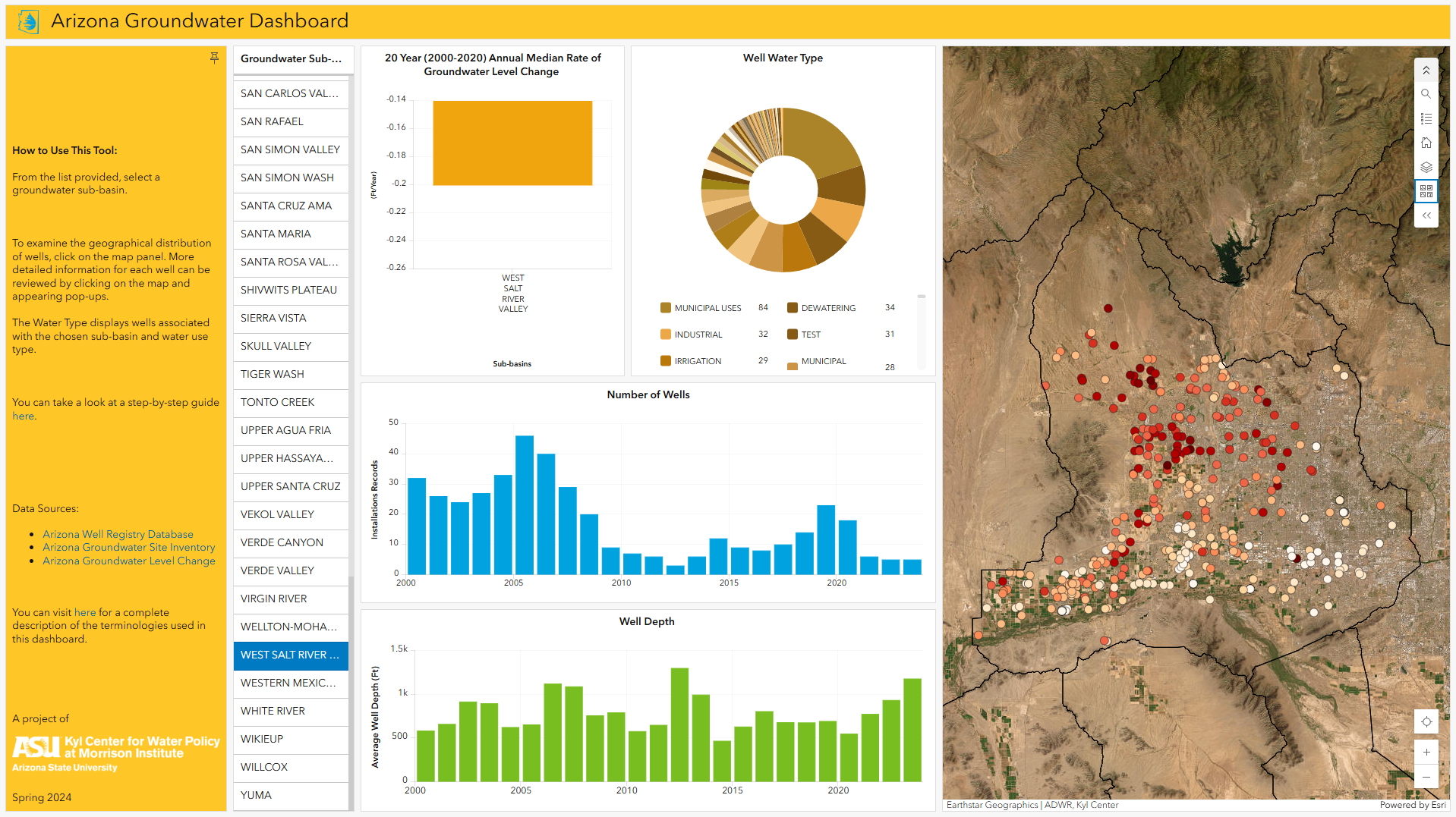 In warm, dry Arizona, aquifers take thousands of years to fill and human technology enables groundwater to be withdrawn far faster than nature replenishes it. The Arizona Groundwater Dashboard offers holistic insights across Arizona's 51 groundwater basins.